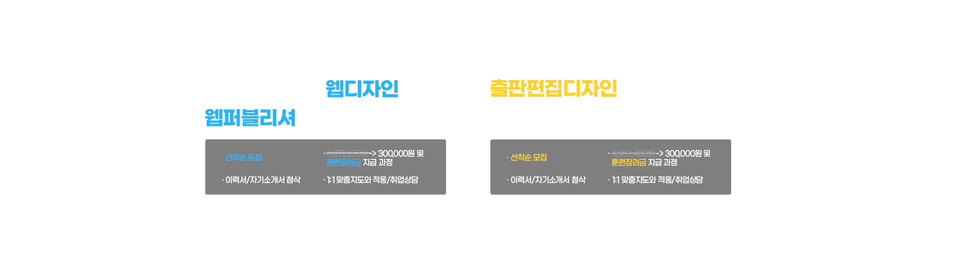김정원, 김도경 취업생다른 교육과정 이후에 심화 과정에 대한 필요성을 인지해서 관련 교육을 찾아보다가 하이미디어의 교육과정을 확인해보니 포르폴리오 중심의 커리큘럼에서 많은 도움을 받을 수 있을것 같아 선택하게 되었습니다. -